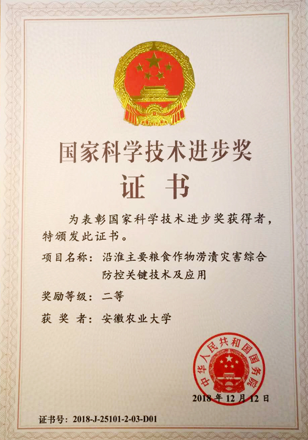 1月8日上午,中共中央、国务院在北京隆重举行国家科学技术奖励大会。我校校长程备久教授牵头完成的《沿淮主要粮食作物涝渍灾害综合防控关键技术及应用》项目获国家科技进步二等奖。