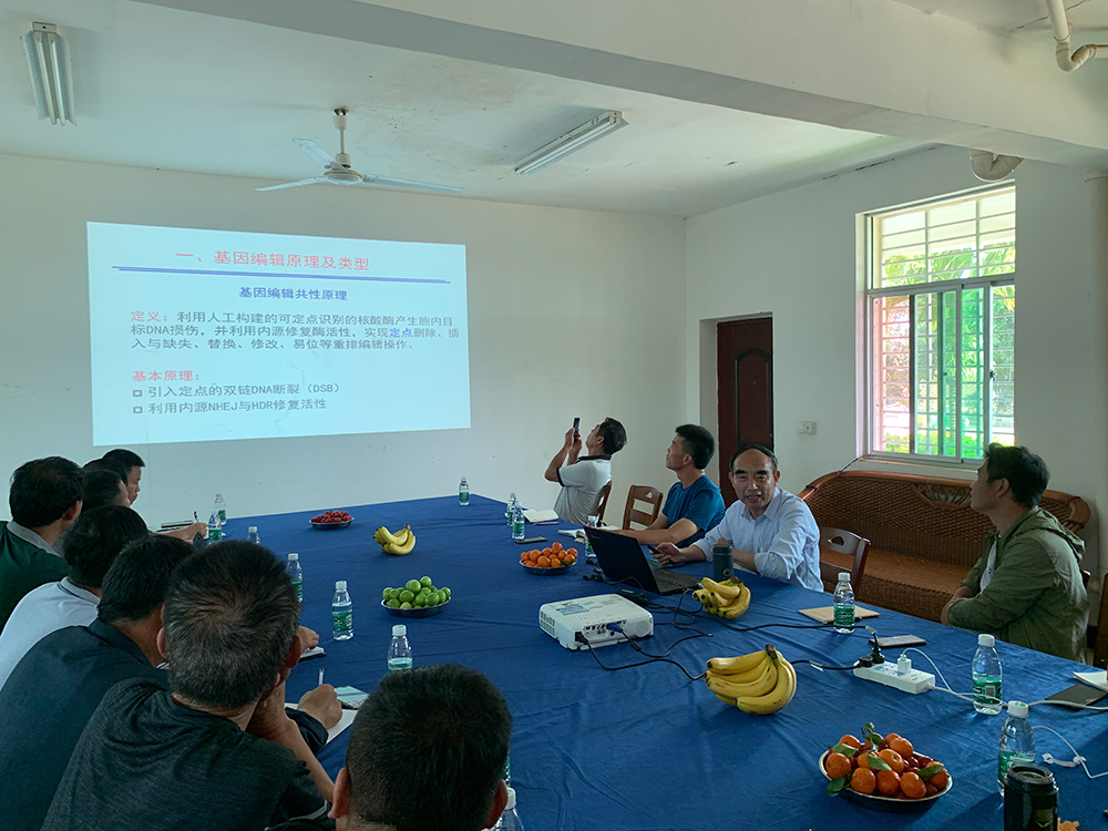 此次考察,玉米研究院人员到安徽农业大学南繁基地交流学习,马庆详细介绍了基地规模、科研育种方向以及骨干自交系特征特性,实地展示了父本群、母本群优异自交系材料,并对双方将要进行合作交流的自交系进行认真讲解,提出组配建议,以便快速利用。安徽农业大学专家一行到丰乐种业玉米南繁基地为科研人员开展《作物基因组编辑技术及其利用》培训,深入浅出地讲解基因编辑的概念及技术原理,重点阐述其在育种中的作用,表示基因编辑技术是常规育种的重要补充,是目前玉米快速育种的加速器,是育种4.0时代的利器。