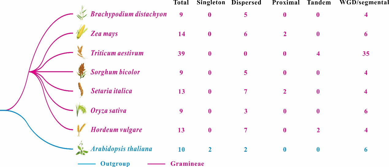文章通过对玉米、水稻、高粱、小麦、大麦、小米以及短柄草七种禾本科植物基因组进行分析,挖掘禾本科呼吸爆发氧化酶基因家族成员的基本信息(图1),并比较了该基因家族成员在各个禾本科植物中的进化关系。进一步结合RNAseq和qRT-PCR结果分析了玉米中该家族基因的诱导表达情况(图2)。