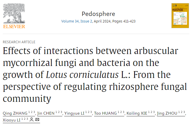 本网讯 近日,Pedosphere在线发表了安徽农业大学生命科学学院作物抗逆育种与减灾国家地方联合工程实验室团队李晓玉课题组题为Effect of Claroideoglomus etunicatum on the growth of Lotus corniculatus L.:From the perspective of regulating rhizosphere fungal community 的研究论文。